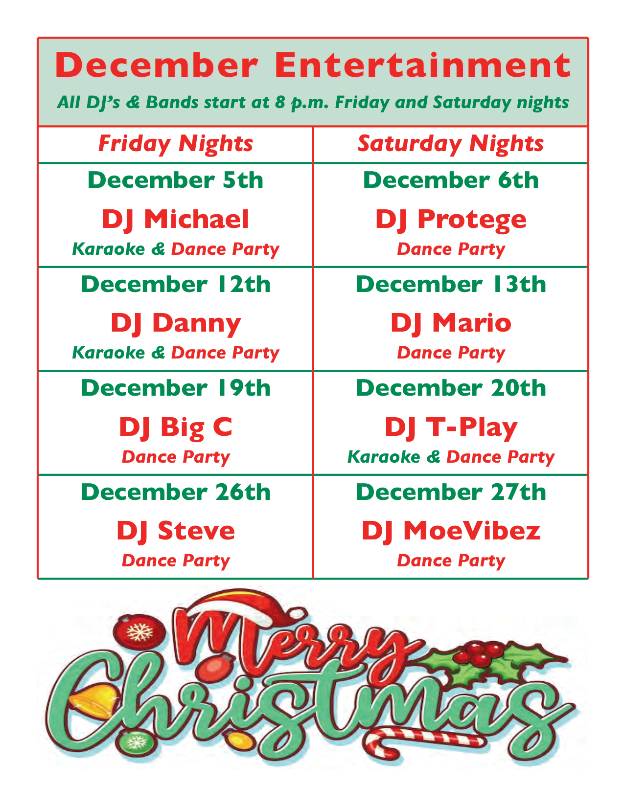 Should Post 1503 be closed due to inclement weather or for any other reason it will be posted here as soon as the information is received by the webmaster. You may also call the post at (703) 670-4124.FOOD MENU 12/8/2025 TO 12/12/2025